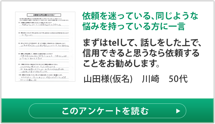 現場の状況を確認し、お見積もりを提出させていただきます。出来る限りお客様のご希望に沿う形で料金を提示させていただきます。![]()
