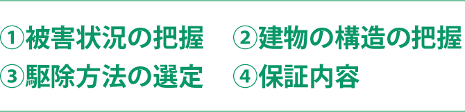 ネズミ駆除は建物の構造、被害の状況、駆除の方法、保障内容等で金額が変わります。正確に料金を算出するために現場調査が必要となります。