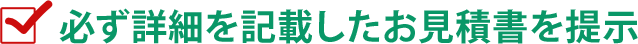 お見積の際に必ず詳細を記載したお見積書を提示させていただきます。各項目についてご不明な点はぜひご納得のいただけるまでご質問ください。
